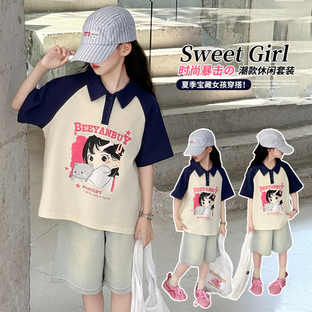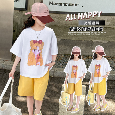 1*1下载视频“2536款卡通女孩双色短裤套装”