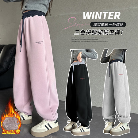 1*5收藏“2582款三色拼腰加绒卫裤”